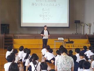 校長先生の話と夏休みの生活についての話を聞きました。どのクラスもモニターをしっかり見て話を聞いていました。特に六年生の姿勢はとてもよかったです。