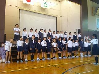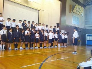 児童集会では5年生が町音楽会で発表する曲を2曲披露しました。たくさんのギャラリーが見守る中、いつも以上の元気できれいな歌声を体育館に響かせました。12日の音楽会がとても楽しみです。