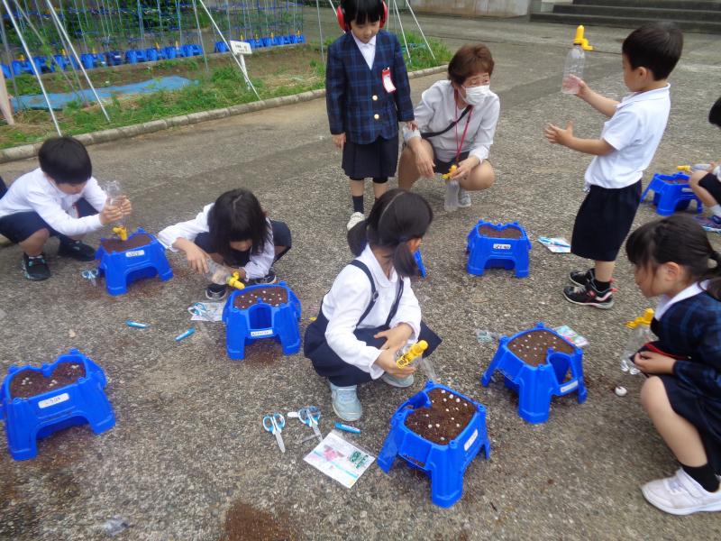 そして当日は、自分の植える朝顔のたねに名前をつけて大切に植えました。