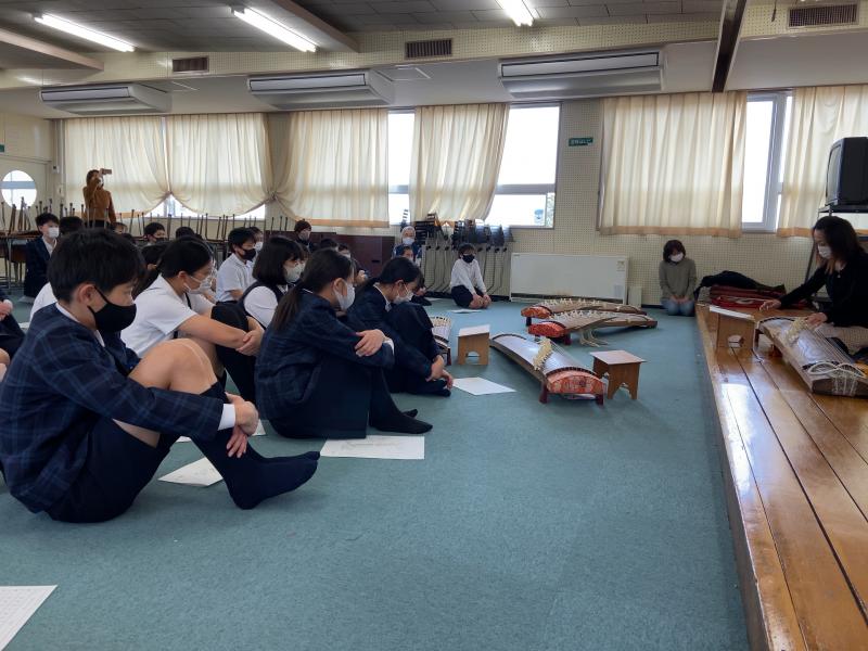 講師の方をお呼びして、琴の演奏体験をしました。