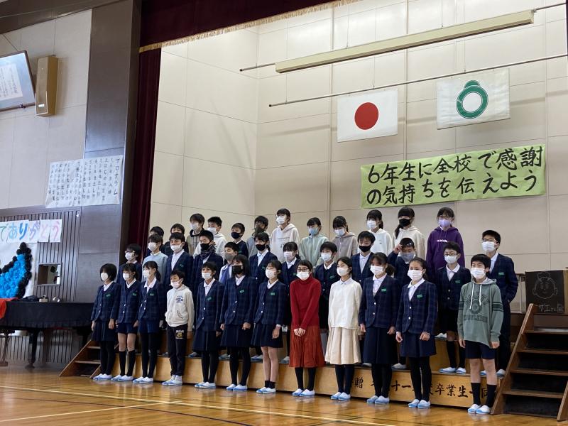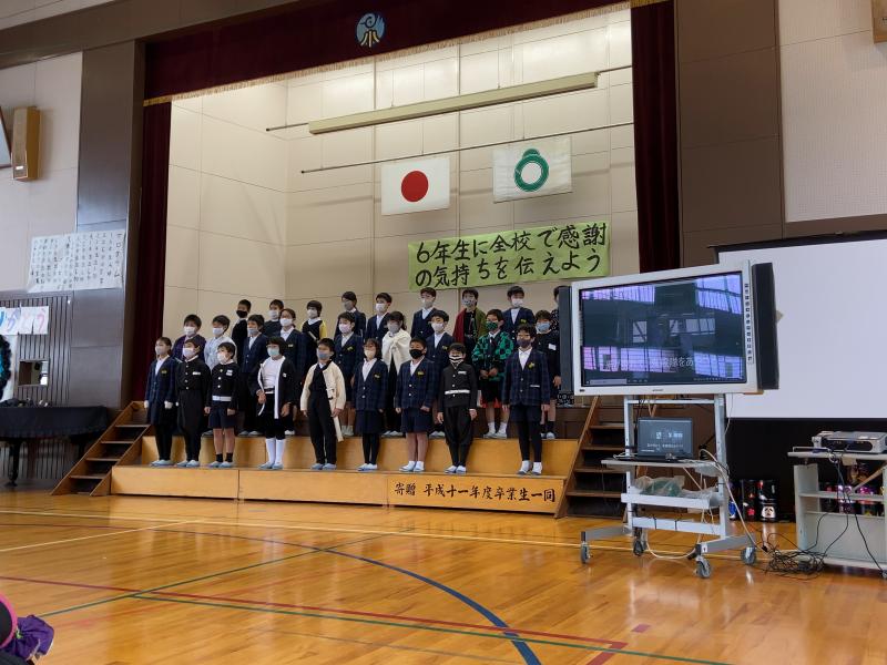 保護者の方や地域の方を招待できず例年より少し寂しい会場になるのではないかと思っていましたが、5年生を中心に1~4年生が協力して6年生に感謝の気持ちをしっかり伝えることができました。会場は少ない人数ながらも、たくさんの笑顔と温かい拍手で包まれていました。