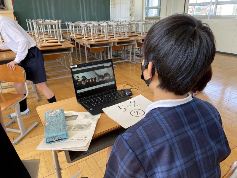 本日、英語の授業で5年生が台湾の竹北市興隆国民小学校とのオンライン交流を行いました。英語を使って日本、石川県、内灘町、学校の紹介を一生懸命していました。オンラインを活用しての交流に子どもたちは、わくわくしながら活動することができました。