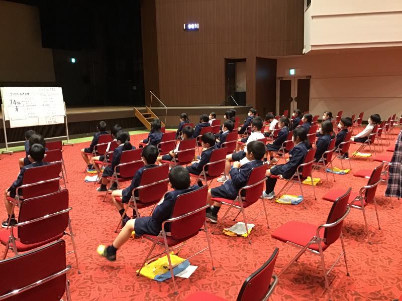 体育館での密を避けるため、テレビ放送で2学期の始業式をおこないました。