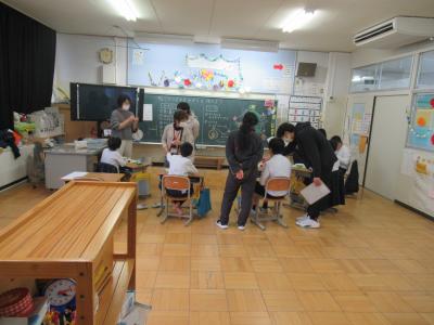 今年は向粟崎小学校で、それぞれが考えたお店や遊びを紹介しました。