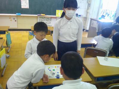 5年生が総合的な学習の時間で取り組んだ米作りをすごろくの形にまとめました。クロムブックを使ったプログラミングで作ったり、画用紙に手書きで描いたりした「米作りすごろく」でふれあいチームの1年生とふれあいました。1年生にルールを説明しながら楽しくすごろくをして過ごしました。6年生へ向けて下学年との交流を今後も行っていきたいですね。