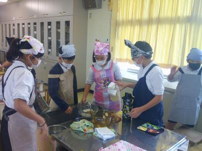 総合的な学習の時間で自分たちが育てたお米を家庭科の時間に調理しました。米をといで、水の分量を測り、吸水させてから、ご飯をたきました。できあがったご飯は、みんなでおいしく食べました。
