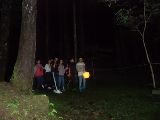 夜のきもだめしでは、森の中を提灯を持って、お互いに励まし合いながら、全員ゴールすることができました。