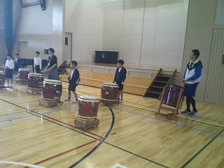 学校公開週間の一環として、5限目に和太鼓体験教室を行いました。
