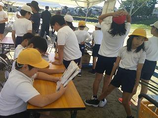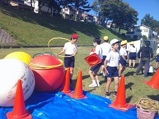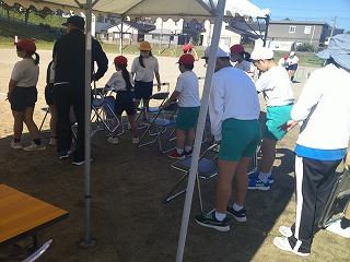 明日は午前が鶴ケ丘小、午後が西荒屋小の運動会です。会場づくりは両校の子どもたちが協力して進めました。