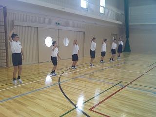 低学年は個人走のスタート順の確認、中学年はラジオ体操と綱引きの練習でした。