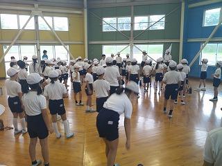 あいにくの雨のため、前半は体育館で開閉開式練習、後半は赤組と白組に分かれて応援練習をしました。