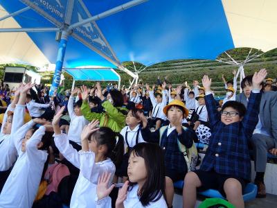 大きなジンベエザメに「すごい!大きい!」と感動する子どもたち。