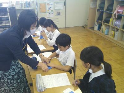 4年生が総合的な学習の時間に点字について学習をしました。先日行った視覚障害のある方との交流に続いての「福祉」に関する学習です。