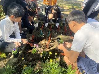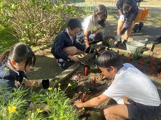 5月に1年生と植えた人権の花の第2弾。今回は秋のお花を植えました。2回目ということもあって前回よりも手さばきがとても上手になりました。人権感覚をきちんと持ち合わせたすてきな心を育てていきたいです。