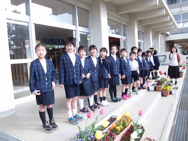 4月の生活目標は「笑顔であいさつをしよう」です。6年1組から順に5年、4年、3年、2年と毎朝あいさつ運動が行われました。途中から、運営委員の子供たちや自主的にあいさつ運動に取り組む子供たちの姿も見られました。まだまだ子供たちの声が学校中に響き渡るとまでいきませんが、着実にあいさつの花が実っているようです。
