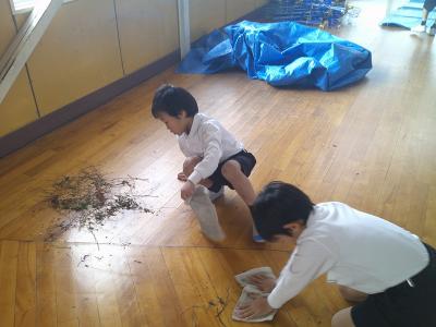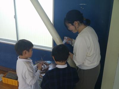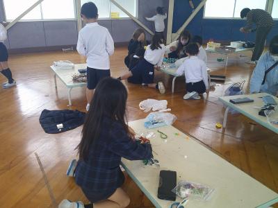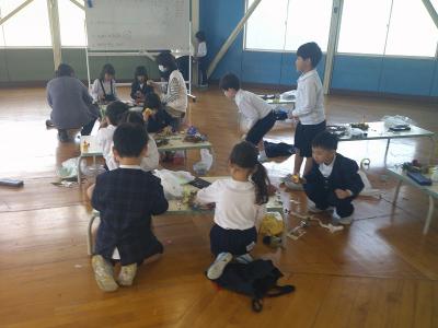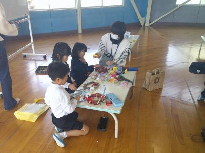1年生活科 オリジナルリース作り 投稿日時 : 11/11 教職員 11/11 3.4限目の生活科の時間にオリジナルのリースを作りました。一学期から育てていたアサガオのつるをベースに飾り付けをしていきます。 7名の保護者の方にボランティアに来ていただきました。子どもたちは保護者の方に教わったり手伝ってもらったりしながら思い思いに作品を仕上げていました。 また、終了近くには、リースが仕上がった子どもたちが掃除を始めていました。片付けまでしっかりしようとする姿がうれしかったです。 Tweet