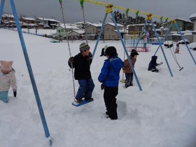 たっぷりと雪が積もったグランドに出て、楽しく遊ぶことができました。