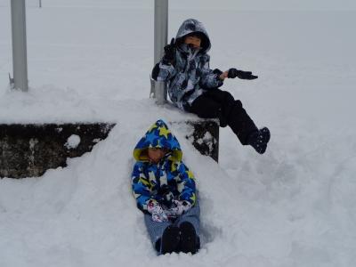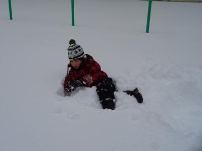 膝上まで積もっていた雪に思うように動けず、転がっている子もちらぼら。
