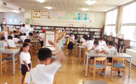 そこで今日は、休み時間だけでも少しだけでもすずしくなってもらおうと、図書館にクーラーをいれて解放しました。満員になるかと思いきや…いつもと同じくらいの人でした。
