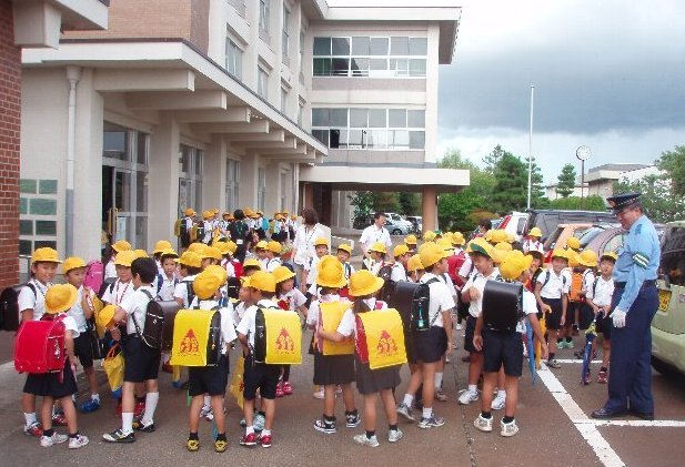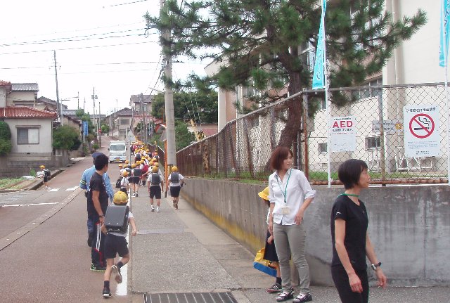 今日の1~4年生の下校は、全クラス玄関に一度集合し、一斉にかたまって帰るというものでした。内灘交番の所長さんも徒歩で下校を見守って下さいました。途中安全パトロールの方もいつものように出て下さっていました。ありがとうございました。