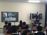 11月15日(火)北陸放送キャスターの松村玲郎さんをお招きして、キャスターの仕事内容やキャスターの仕事で大切にしていることなどをお話してもらいました。松村さんは小学生の頃からテレビやラジオが好きだったこともあり、北陸放送に入社することになったそうです。現在は、18:15からのレオスタにキャスターとして出演しています。「人を傷つけないように、見ている人との信頼関係が築けるように気をつけて話す」「コロナ禍の今はマスクをしているので、特にゆっくり目にわかりやすく話す」ことを心がけているそうです。