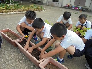 本校では園芸委員会が中心となり、校庭に植えさせていただきました。