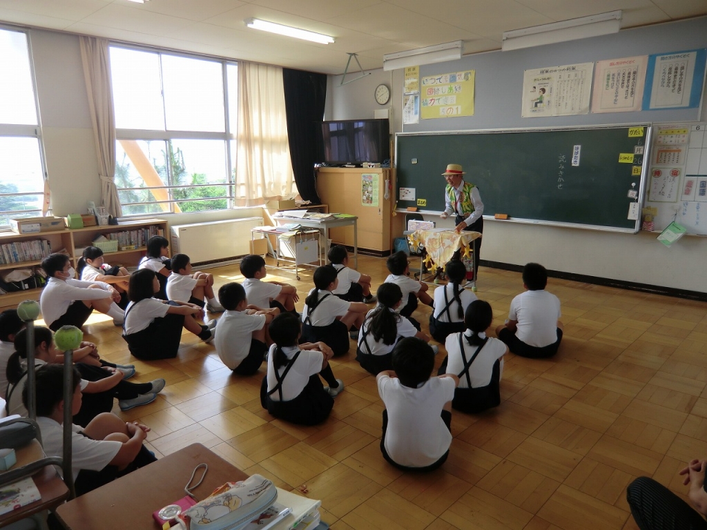 児童は毎月のこの時間を楽しみにしていて、興味をもって読み聞かせをきいています。