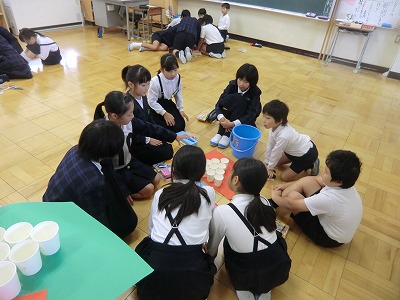 ふれあいフェスティバルでは、ふれあいグループごとに考えたお店をつくり、お店やさん・お客さんに分かれてゲームを楽しみます。
