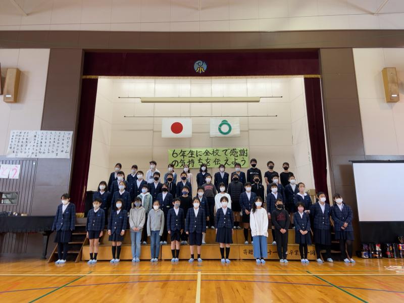 保護者の方や地域の方を招待できず例年より少し寂しい会場になるのではないかと思っていましたが、5年生を中心に1~4年生が協力して6年生に感謝の気持ちをしっかり伝えることができました。会場は少ない人数ながらも、たくさんの笑顔と温かい拍手で包まれていました。