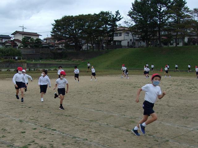 11月9日(水)のマラソン大会に向けて、かけ足運動が18日(火)から始まりました。長休みに1~3年生は一周150m、4~6年生は250mのトラックをそれぞれ走りますが、今年も、運動場が密にならないように、走る学年を分けて取り組みます。走った周数をカードに記録し、1枚目(白)が終わったら2枚目(水色)・・・と進みます。長く走ることができるようにがんばって取り組んでほしいです。