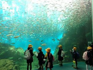 「海には、どんな生き物がいるのかな?」「公共の施設には、どんな工夫があるのかな?」と、たくさんの疑問をもって、水族館を見て回りました。