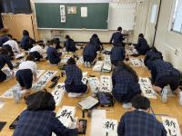 2・3時間目には各学年で書き初め大会を行いました。冬休みに練習した文字を、集中して心をこめて書くことができました。
