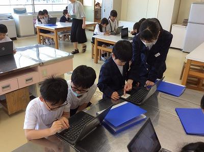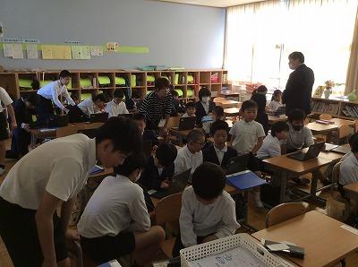 内容は「クロームブックの使い方」です。クロームブックは1年生にとっては初めての経験です。興味津々の1年生に6年生が丁寧に教えていました。