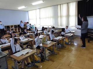 全学級で学級担任が授業を行い、子どもたち同士や先生との学習の様子を見ていただきました。どのクラスも子どもたちは張り切って学習していました。低学年の中には、おうちの人が来ているかが気になって勉強に集中できない子もいましたが、それも微笑ましい姿でした。