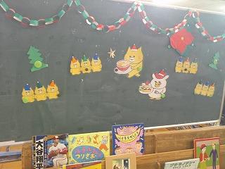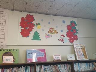 ボランティアの皆さんが来校され、図書室の掲示をクリスマスバージョンにしていただきました。