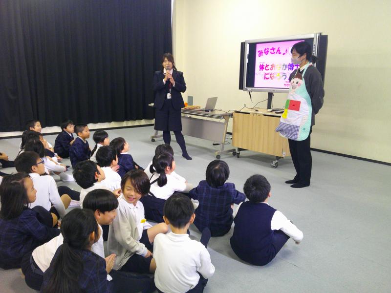 2年生を対象に、ヤクルトさんによる出前授業「おなかとうんちの話」をしていただきました。