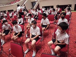 文化会館の舞台の上でライトの光を浴び、指揮者の方を見て一生懸命に歌っている5年生がとても頼もしく見えました。
