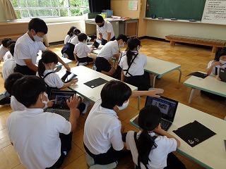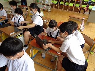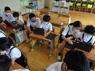 6月15日(木)1年生がchromebookの基本的な操作を6年生から学びました。パスワードの入れ方やログインの仕方を習った後、オクリンクを使った写真の撮り方やメモの書き方など優しく教えてもらいました。