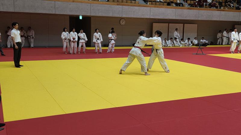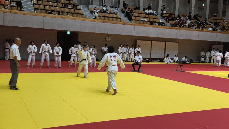 大会初日に団体戦が行われ、本校柔道部が男女とも決勝戦に進出しましたが、どちらも敗れ、準優勝に終わりました。