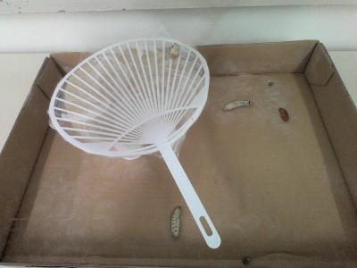 このために、繭を作り始めた蚕7〜8頭を選び、繭を破ってうちわの骨組みの上に優しく置きました。