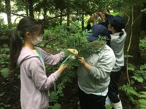 取り木について、事前学習を行いました アテの森林に入っていきます
