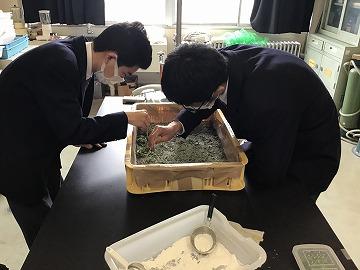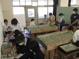 農業科の大丸先生と授業で蚕の飼育をしている園芸系列の生徒3名で、