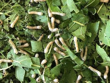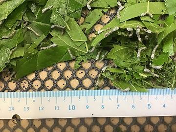 桑の葉を食べる勢いも増し、現在は一食につき10枚前後の新鮮な桑の葉(桑の葉の先端から3~4枚目の葉)を与えています。