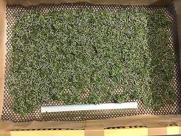 朝、全てのお蚕さんたちが5令になっていたことを確認し、網を敷き、桑の葉を与えました。5令蚕からは「ダンボールハウス」2つ+「緑のタラブネ」1つの合計3ヶ所での飼育になります。いよいよ最終段階の5令です。ここでの桑の葉の食べ具合で、繭の大きさにも影響してきますので、勝負の5日間(「玉小石」の5令は5日間といわれています)になることでしょう!!