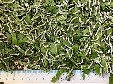 ※写真は、本日の蚕の様子ですが、あまり昨日、一昨日と代り映えしませんね(笑)