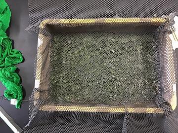 今朝の作業は、昨日夕方に敷いた網を持ち上げて、別の容器に移し替えました。なぜ昨日、網を敷いてその上に桑の葉を置いたのかというと、2令を始めるにあたっての除沙(じょさ)を行い、新しい容器(蚕座)に引っ越しをするためです。これは蚕の性質を利用した移動方法なのですが、お蚕さんは上に上に登ろうとする性質があります。眠に入り、脱皮をし、全員が起蚕となるまで桑の葉を与えられない期間があって、そんな状態の中で、自分の上に新鮮な桑の葉が与えられたときは、、、お蚕さんの性質+空腹→我先にと一斉に登り始めますよね!そして、ほぼ全員が登りきった段階で、網ごと持ち上げて新しい容器に移せば、キレイな蚕座で2令をスタートすることができるのです。