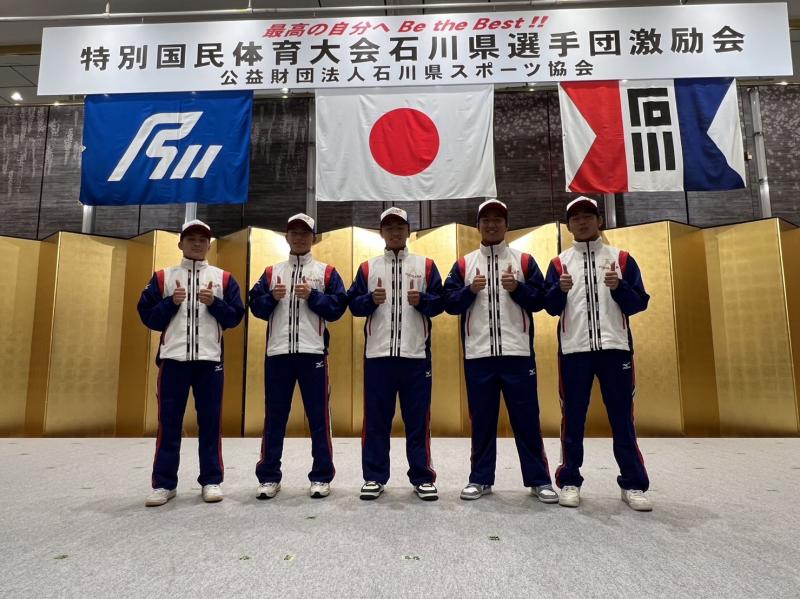 9月18日(月・祝)に、ホテル日航金沢にて「特別国民体育大会石川県選手団結団壮行式・激励会」が開催されました。少年男子の部に、石川県代表として本校柔道部から5名が出場します。