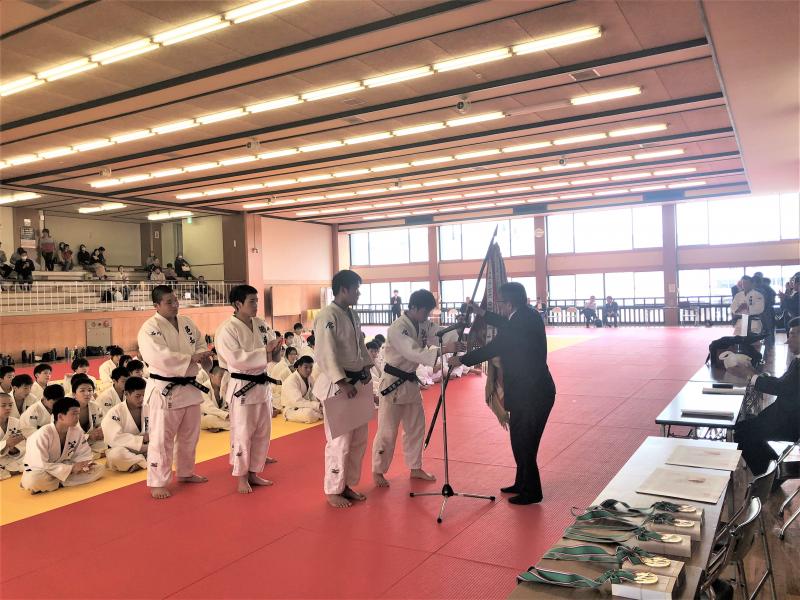大会初日に団体戦が行われ、本校柔道部が男女とも決勝戦に進出しましたが、どちらも敗れ、準優勝に終わりました。