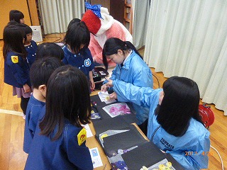 園児との交流で紙芝居を読み、トキメキカード作りをしました。
