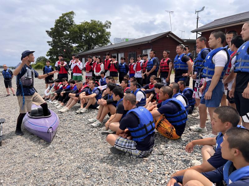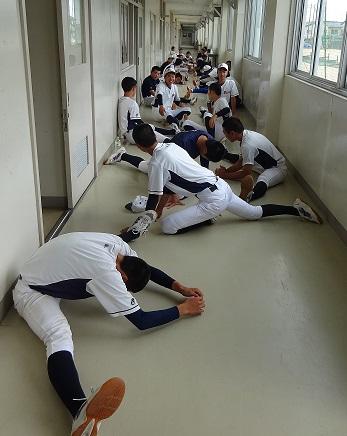 雷雨から避難中の野球部員たちがストレッチをしていました!